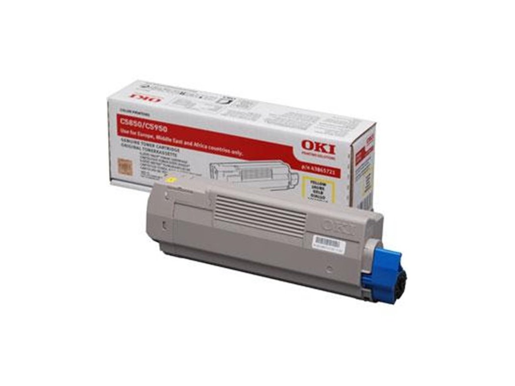 Originální žlutý toner OKI 43865721. Životnost je cca 6000 stran A4.
