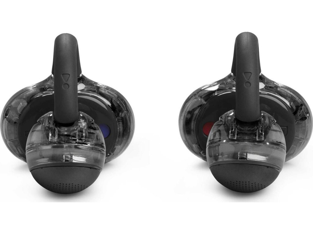 Pomocí aplikace JBL Headphones si můžete zvolit, zda chcete používat jeden nebo oba směrové mikrofony v každém sluchátku. (Záleží na tom, jak je máte umístěná na uchu: vyzkoušejte, co vám nejlépe vyhovuje.) V obou případech sluchátka JBL Soundgear Clips využívají algoritmus s umělou inteligencí, který potlačuje hluk z okolí, takže vás bude vždy jasně slyšet i při hovoru venku za větrného dne.